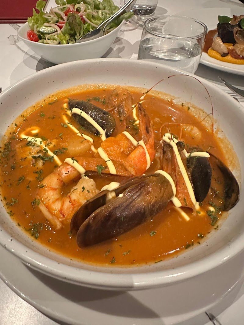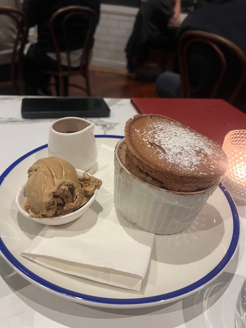Yesterday we went to Boucher French Bistro! On average, we’d rate it around a 3.5. The food was generally good, but considering the prices and the fact that it’s a French specialty restaurant, we were expecting a bit more. For the entrée, we had the beetroot, horseradish and dill cured salmon with grilled polenta. The polenta was amazing : I loved it! The sauce around it, however, lacked flavour. Presentation-wise, though, it was excellent (as you can see 😄). For the main, I had the Angus beef, which I really enjoyed. Everything on the plate was delicious, yes, even though I had it well done, which many people would judge me for 😂. I’d give the flavour a 5, but I expected a bit more from the veggies on the plate considering the price. I also ordered the honey salad, which was good, nicely seasoned. My partner had the bouillabaisse and said he loved the sauce and really appreciated the dish overall, but the scallops and prawns were slightly overcooked, which brought the experience down a bit for us. We shared the Lindt chocolate soufflé for dessert, and that was a win! The ice cream came with some crumble at the bottom, and the melting chocolate on top was absolutely delicious. Definitely worth trying! Now, about the staff, we had read reviews beforehand, and there were quite a few complaints about service. But honestly, we had a great experience. Most of the staff seemed young, but they were supportive, attentive, quick with our orders, kept our drinks filled, and did their job really well. They’re not the super chatty, coffee-shop-style staff, but they were friendly and professional, totally fitting for the environment. So I don’t understand the low ratings on that. Parking was easy. The atmosphere was nice — a bit dark (but that seems to be a French restaurant thing? Haha no real complaints there). I was just in a slightly unstable chair 😅. Overall, it’s a nice spot!