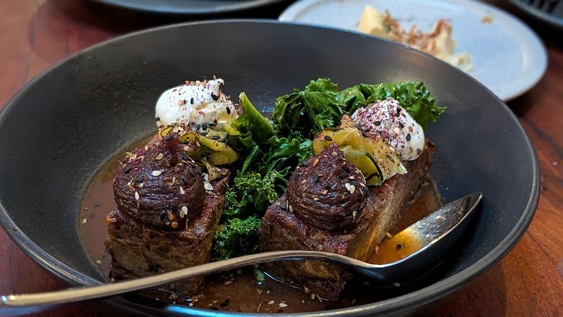 Manuka Woodfire serves overall flavourful and interesting food in a popular, bustling setting. The meal started strong with excellent starters, particularly the focaccia served with a uniquely smoky "cloudy" butter and fried shallots. While the food is generally good, there were some hits and misses. The pressed lamb was a clear highlight, perfectly complemented by a tangy cream. However, the pork belly was a little tough and chewy, and the portion of grilled shrimps was disappointingly measly for the price. The friendly and attentive staff added to the experience. This spot is best for smaller groups looking to share a variety of dishes. Be aware that portion sizes aren't always adequate for bigger groups, and parking in the area is limited.