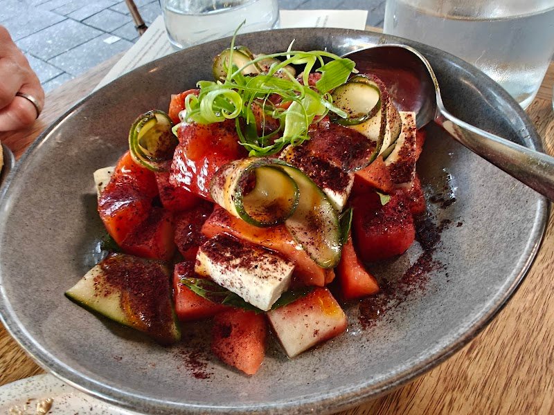 What a delicious evening. Seated outside at a very warm evening, we enjoyed every dish. The flatbread was excellent with the babaganoush, the watermelon Salat very fresh and tasty. The special of the day was crudo, excellent, as well as our prawns as the final course. Good wine list, friendly service. Will come back, thank you.