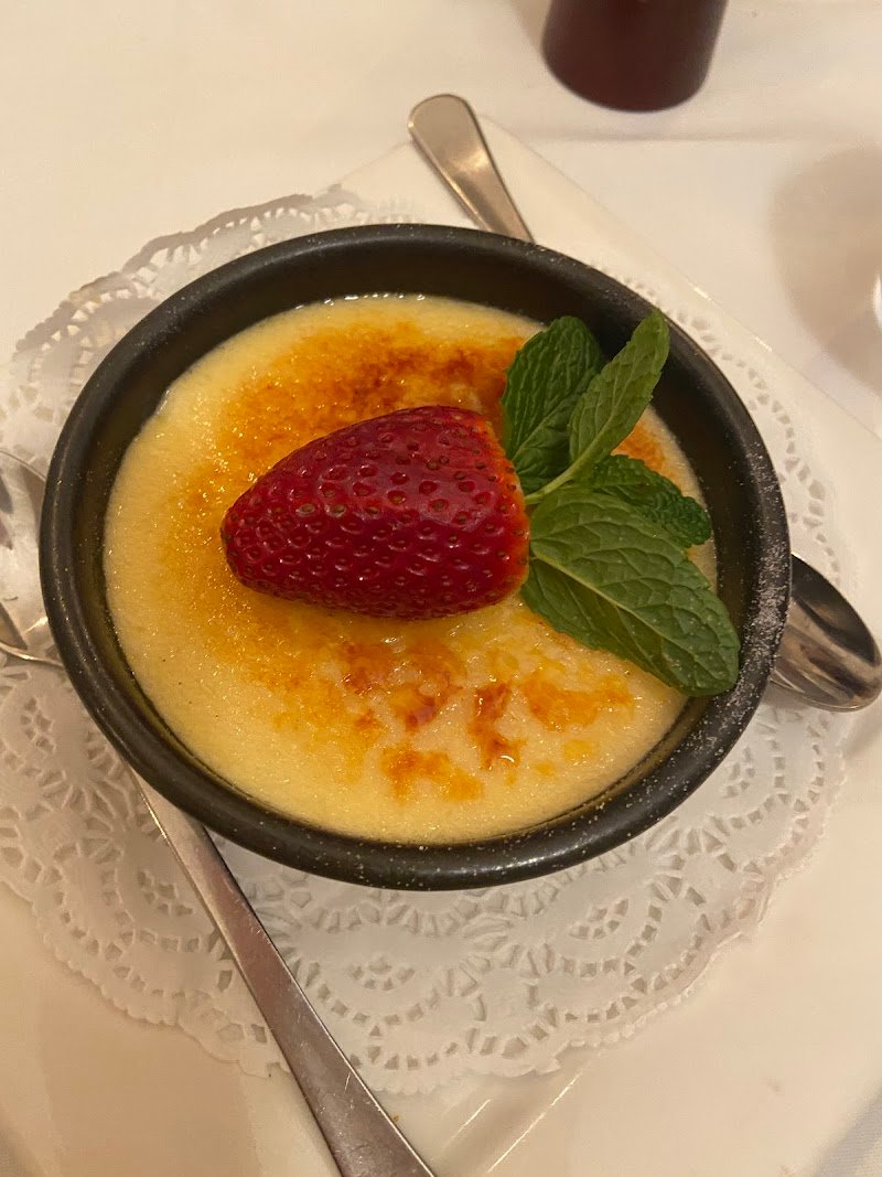 Delicious steak and fries but the ravioli with pesto entree was just average for me. I was impressed by the atmosphere and I thoroughly appreciate the BYO option. The apple tart dessert was yummy though i didnโt enjoy the meringue or the profiteroles