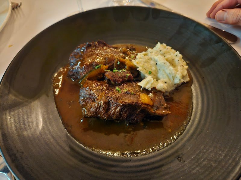 Amazing service; both waitresses were so lovely and helpful. Food was good too, we had the steak tartare which was delicious and revisited, we had the mussels and the canard, and my fav fav obviously bread and butter complimentary. The wine selection is lovely too, the Riesling was really good. Great little French bistro Iโd def recommend. The ambiance is lovely inside as well.