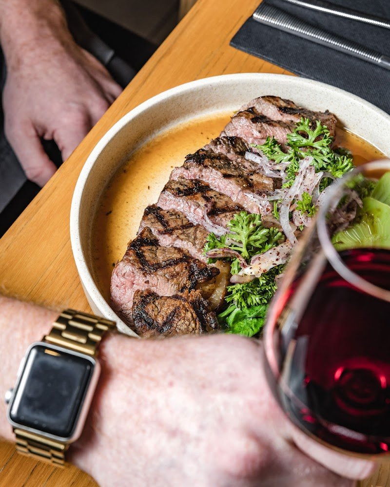 I was staying at the hotel so I gave the restaurant a try. I ordered the toasted sourdough entrรฉe and the eye fillet main. Unfortunately my main came before my starter and I had to request it when the main was delivered. I ordered the steak medium rare and despite it looking good was very tough. I am not sure what was done to it to make it so tough, it took me three to four cuts each time to cut through it. Very disappointing experience.