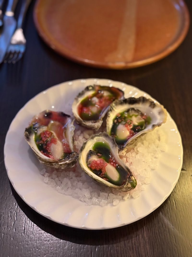 Ennui- a bold upscale dining experience in the heart of Sydnry Small, cosy restaurant with a bar and street-facing tables that expresses Surry Hills inner-city vibe perfectly. The food here is rustic with few ingredients, but confident and bring very bold flavour profiles. The oysters were fresh, though on the smaller side. The dill oil was a nice touch, but the mignonette leaned a little too sour and slightly overpowered the oyster itself. The polenta was excellent โ well seasoned, hot, and satisfyingly starchy. The popcorn element paired with the sauce added both creaminess and crunch, making it a thoughtful and well-executed dish. The escargots with sourdough were good, but fairly average and didnโt stand out. The clear star of the night was the duck. Crispy skin with smoked notes- beautifully rendered. The bone sauce tied everything together โ deep, complex, savoury, with a gentle hint of sweetness lingering at the end. We also ordered the MS5 Black Angus rump. The meat was tender, and cooked nicely. A major let-down was service timing: both mains were brought out at the same time, which rushed the experience and caused the food to turn cold. Steak, in particular, i would have preferred to be served on a properly heated plate โ unfortunately, it wasnโt. Overall, the food is on the better side. A nice setting, and with better pacing, it could be a very polished dining experience.
