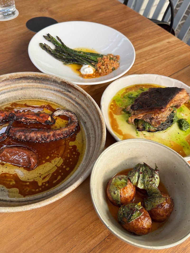 Everything we ordered was extremely tasty! We had the bread, baba ganoush, bug skewer, octopus, lamb rib, chat potato and asparagus. Drinks were also delicious! Smokey margarita was excellent. We also had the meringue dessert and the baked cake and the cake was such a winner. Will be back! Laneway seating had a perfect brunch vibe.