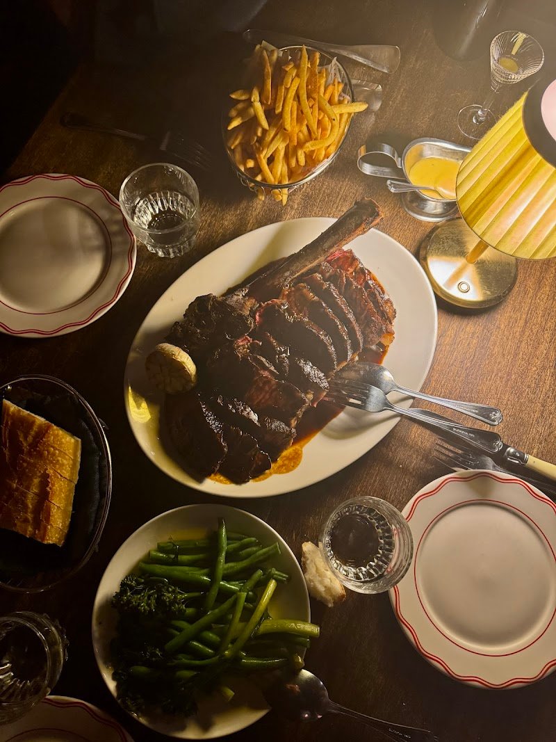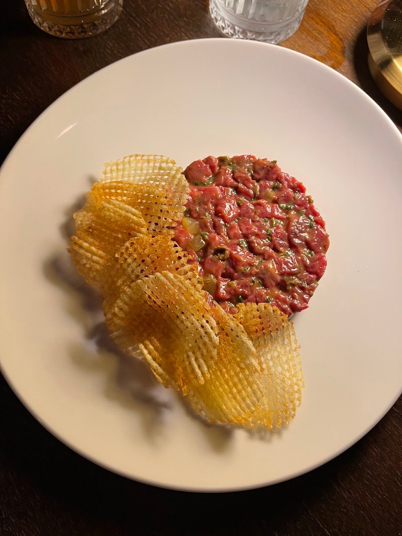 We ordered the beef tartare, oysters, salad niçoise & escargot for entrees; 3 steak frites, cod, wagyu burger for main meals, 2 creme brulee & chocolate bar for dessert. Our dinner came to almost $600. Good for a date night, ambience and music was great. Service was definitely excellent, they were very attentive to needs, always pouring water in glasses when it was near empty. We felt well looked after and attended to. The front of house could've have been more specific that the tradition welcome drinks came with a cost, otherwise would have not purchased as most of the people in our table weren’t hard drinkers, given it was $10 a small martini glass. Wagyu burger was a little bit salty and gruyere cheese was barely noticeable. We had beef tartare in Penfolds for lunch before coming here for dinner, and Penfolds offered more hand cut chips to accompany their beef tartare which we appreciated. Also wasn’t sure why we were asked if there was any celebration while booking when there wasnt any special / complimentary desserts. Other restaurants we’ve been in have given a small cake / glass of wine. We have tried plenty of french restaurants in Melbourne so we had a bit of comparison. Steak was excellent & the cod with crab consomme was also great. Would have done a wine pairing with the meals if we didnt just visit a winery earlier.