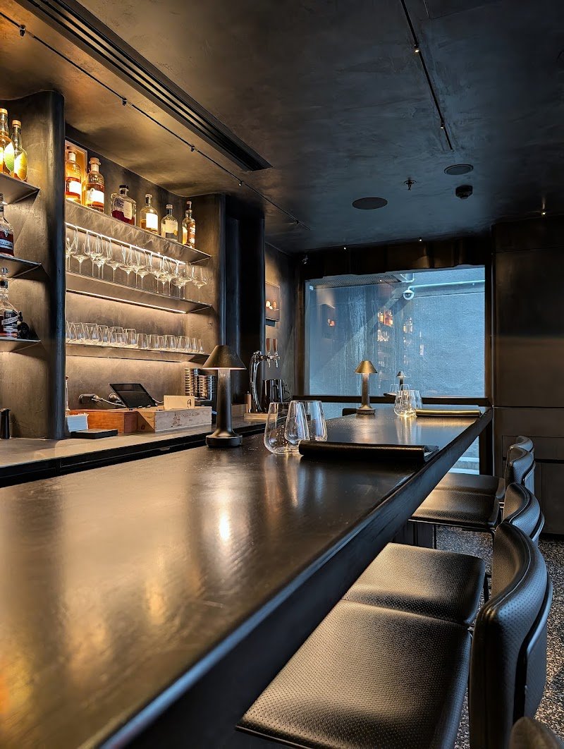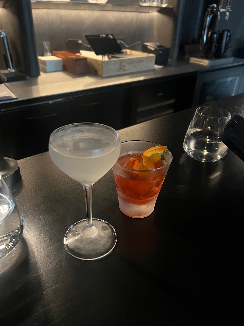 Massenez Peach & soda 10/10 Atmosphere, service 8/10 Bathrooms, Champagne Gimlet 7/10 Kinda a weird vibe although the bartender we spoke to was LOVELY & super knowledgeable. Everything looked great but it was all for show? No cocktails were being made or even wine being poured from behind the bar, it all came from the main restaurant. Champagne gimlet was a bit average but the recommendation I got from the bartender was amazing. Itโs a small space to so it kinda got hard to hear each other when it was full.