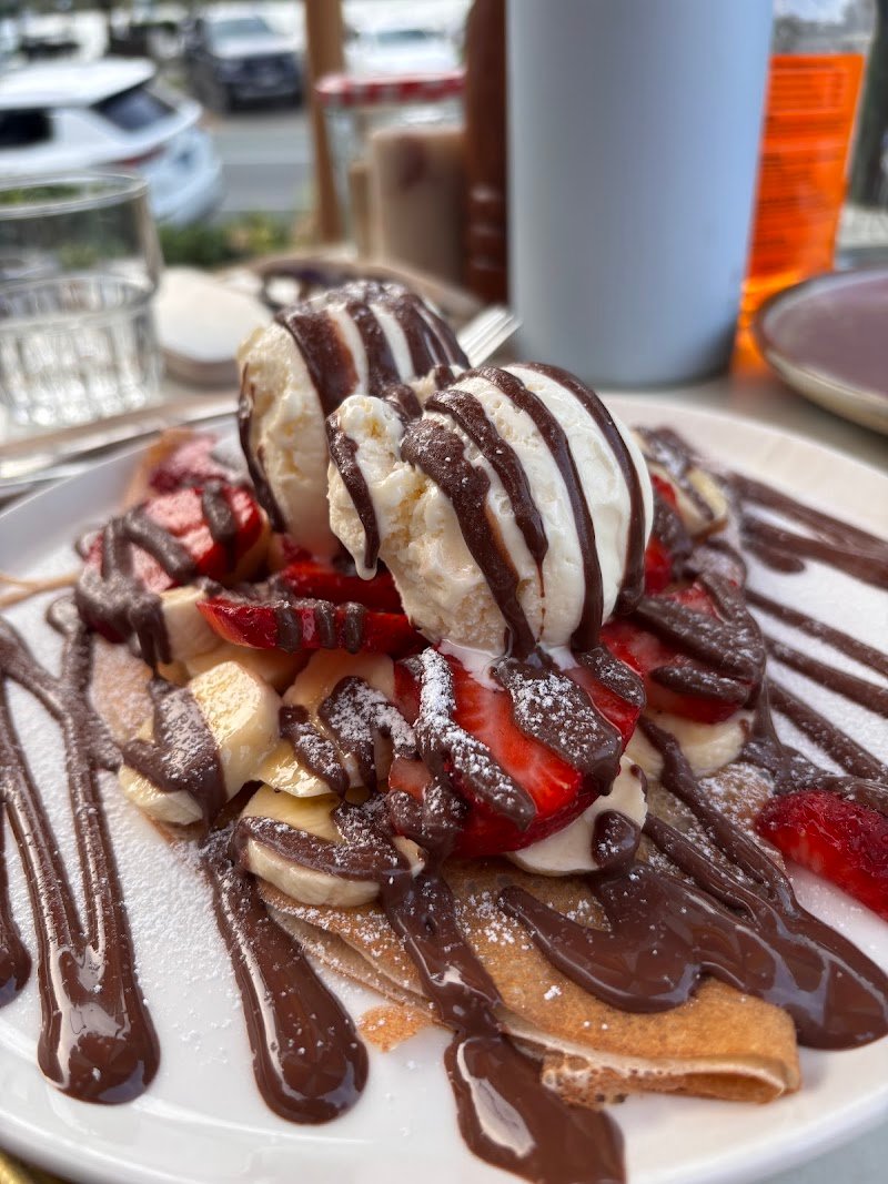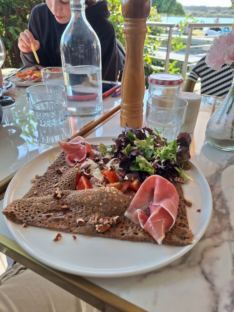 I cannot recommend this place enough like seriously!! The food and drinks: so incredible. From the presentation to the taste I was seriously savouring every bite! I purchased the profiterole crepes and they were so simply delicious. The crepes were the perfect texture and the icecream wasnโt too sweet or overpowering. My parents purchased one of the galettes and they were also amazing with the perfect texture, beautifully fluffy eggs and a great flavour profile (I unfortunately didnโt take a photo of these). Service: the girls were so kind, friendly, patient and very welcoming! Atmosphere: not only is the view stunning with a view of the river, but the interior design and aesthetics of the place are so quaint and cute! If youโre into taking photos this is such a cute spot to get some brunch pics. Although it was raining when I went, the outside is covered by a lovely shade sail so you can still enjoy the outdoors without getting wet. Thank you for the great experience, I truely ask everyone come here while in Noosa.