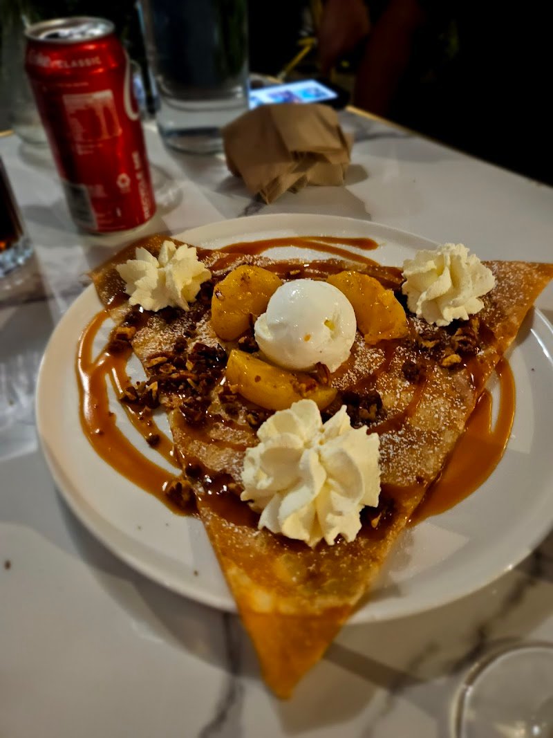 We stopped in to this busy little cafe for a Sunday breakfast. The atmosphere and food is very authentic. We enjoyed our meal. A Nordique crepe with goats cheese, egg, avo and salmon. And an apple crumble crepe with candied walnuts, cream and ice cream. We did wait quite a while for our food as the cafe was busy. Recommend sitting outside as the inside is hot near the kitchen and there's no air-conditioning.
