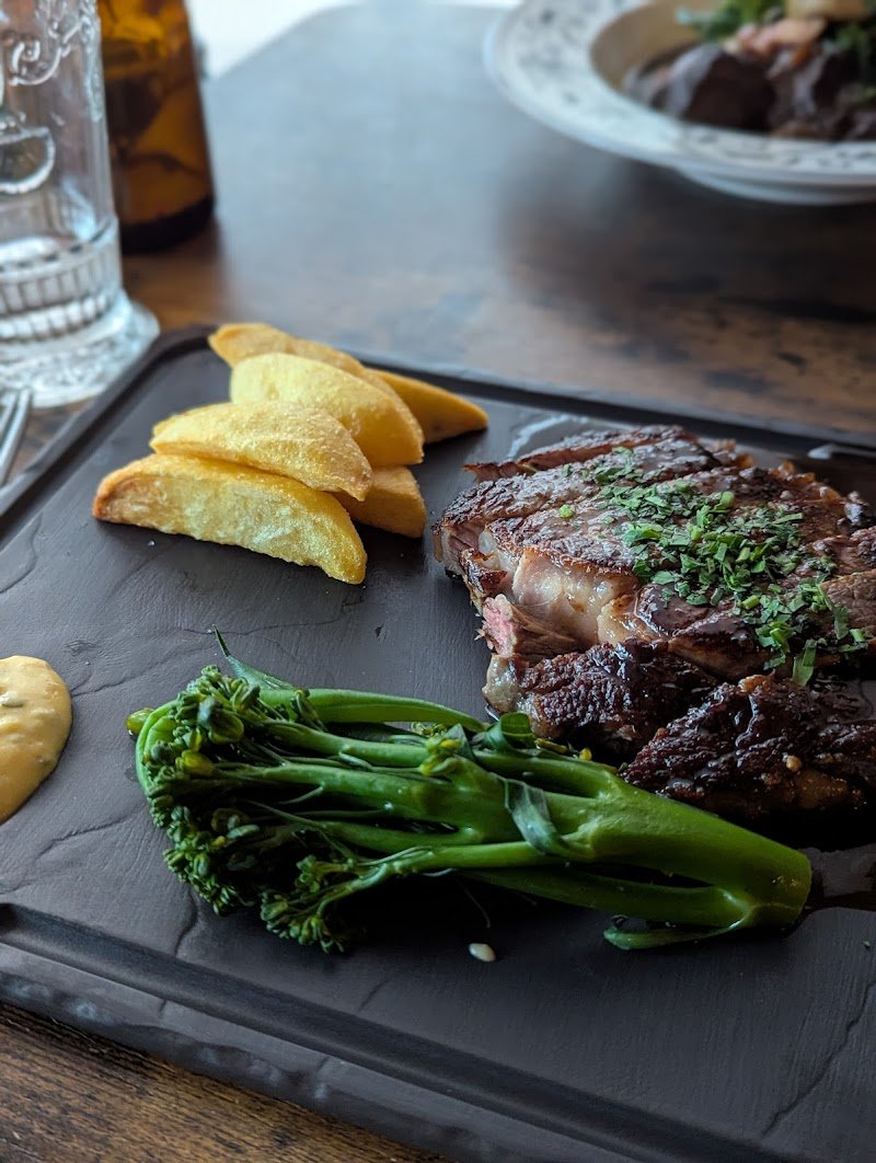 The cheese souffle,escargot and duck liver pate were delicious especially if you miss P’tite Ardoise cuisine. The mains portions were of decent size. The Pork loin I ordered was a generous portion. My husband enjoyed his steak frites and my mother enjoyed the duck confit. There were also bread and butter given on the house. The only downside is they do not have high chairs so we sat on the bench with our 2 year old who enjoyed to share our food and unfortunately today they had limited stock of soft drinks and no juices. I would definitely recommend for a romantic date or adult get together.